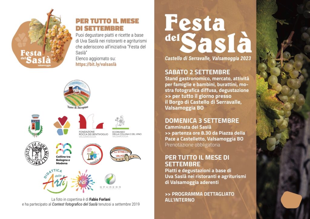 La Festa del Saslà è un progetto dedicato alla cultura enogastronomica del territorio della Valsamoggia che per l’occasione vuole promuovere l’Uva da Tavola Saslà, che è da secoli una Bontà!