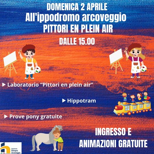 Laboratorio “Pittori en plein air”, bimbe e bimbi pittori per un giorno a cura di Didattica delle Arti – WOF eventii cavalletti da giovane artista saranno disposti a bordo pista per dipingere all’aria aperta come un pittore impressionista, la bellezza dei cavalli al trotto!